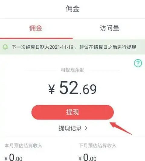 4、随时随地快速取款,并实时反馈您的推广数据。点击主页底部的“佣金”,查看您的收入和推广数据。