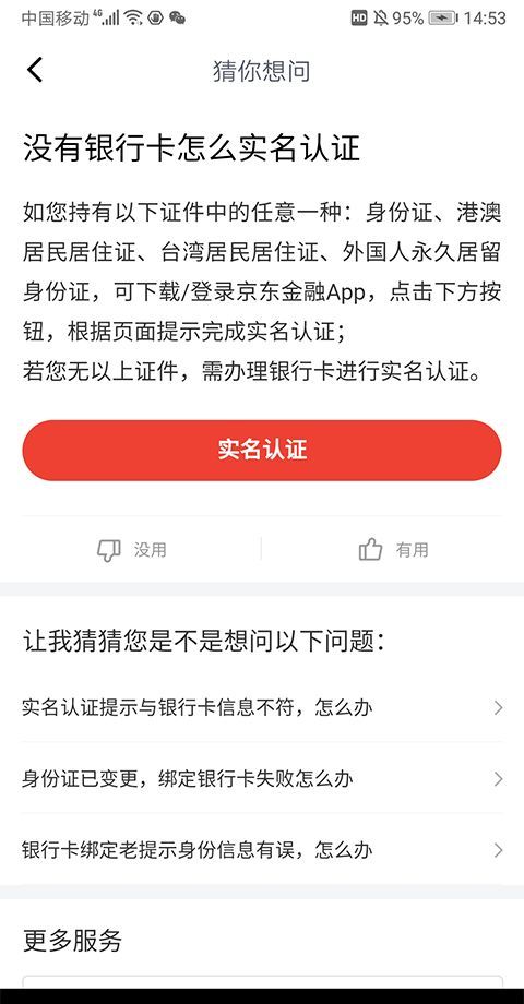 5、在实名认证时根据官方客服页面显示需要银行卡进行实名认证,认证通过后便可将提现的钱进入银行卡账号中。