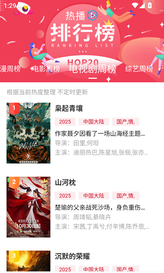 2、点击排行榜查看近期热门电视剧、电影、综艺。