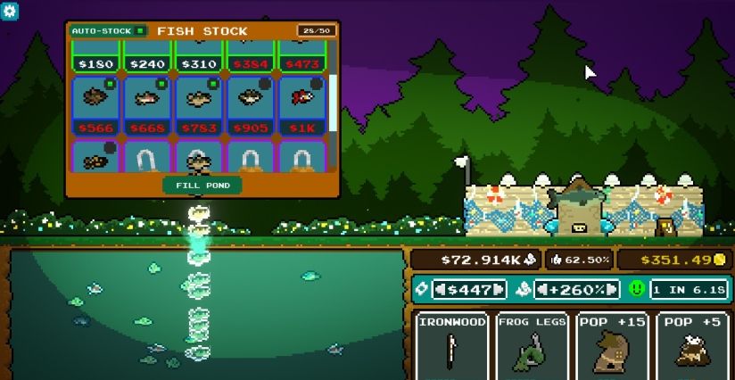 在你的池塘里养上各种水生生物,从常见的到稀有的都有。升级并租用一流的钓鱼装备,确保你的顾客能钓到鱼。