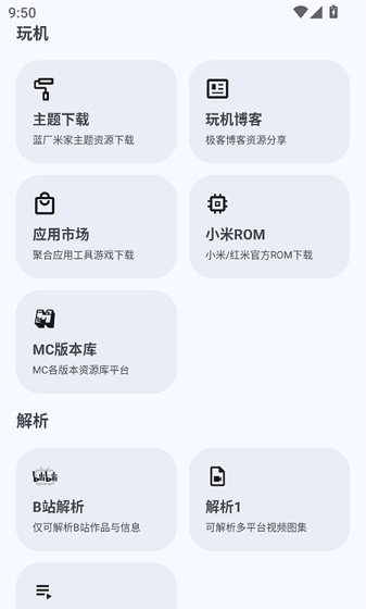 2、往下拉,我们能够看到玩机、短视频解析功能。
