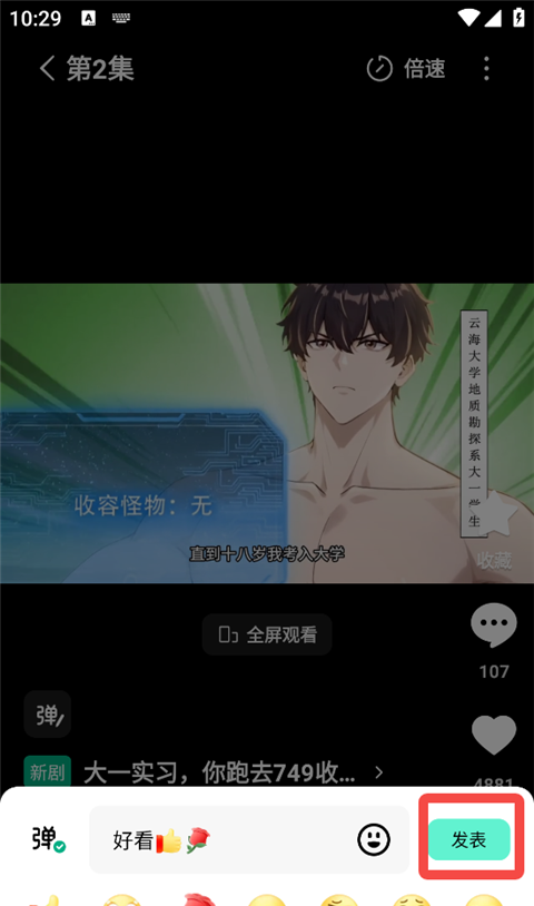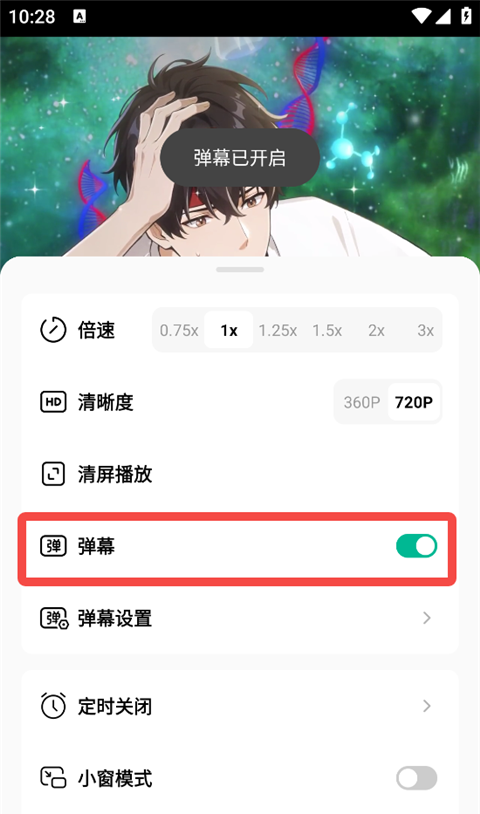 3、返回播放界面,点击【弹】进行发送弹幕。