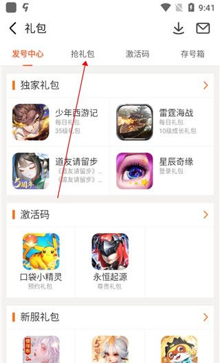 5、在抢礼包界面中找到自己所玩的游戏并点击进入领取。