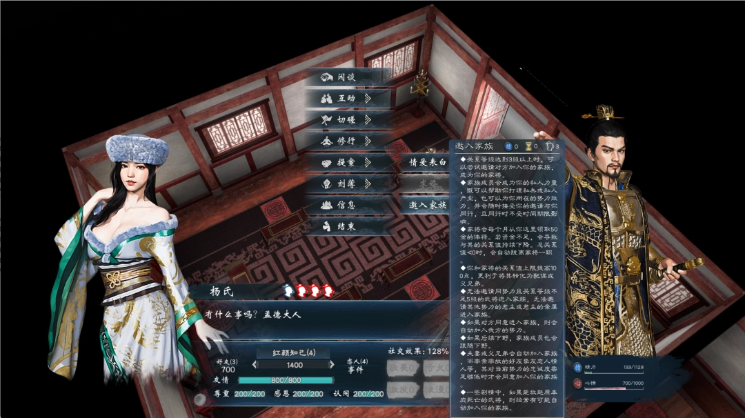 结义与结婚:当与武将的关系达到一定程度时,可以与其结义或结婚,与配偶进行房事便有机会诞下子嗣。