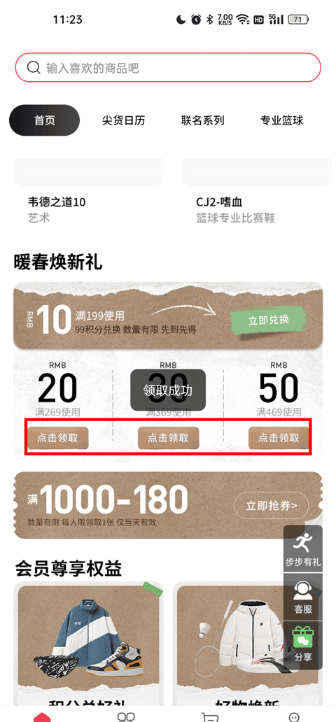 3、每天都有新产品加入,数亿张优惠券可以在限定时间内领取。