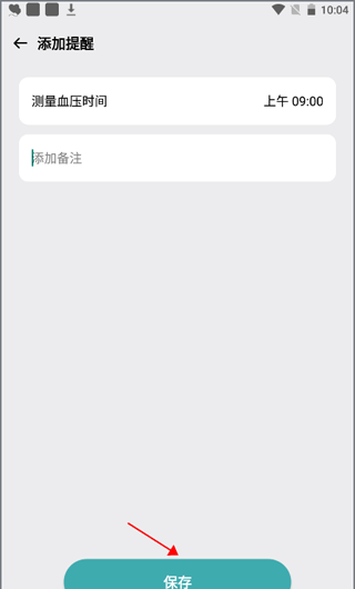 4、设置测量血压的时间,添加备注,点击“保存”即可完成设置。