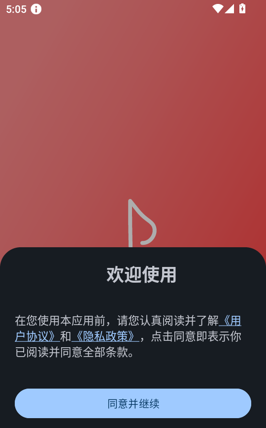 1、首先,打开软件,阅读说明,然后点击“同意并继续”按钮进入APP。