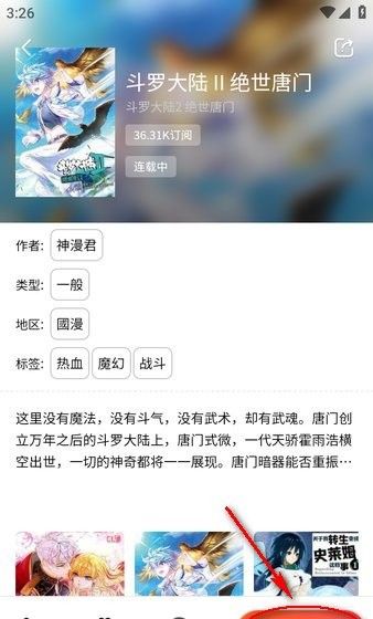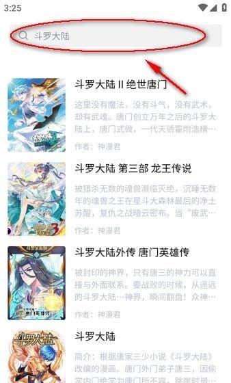 2、接着搜索要看的漫画,比如斗罗大陆,下面就会出现相关作品。