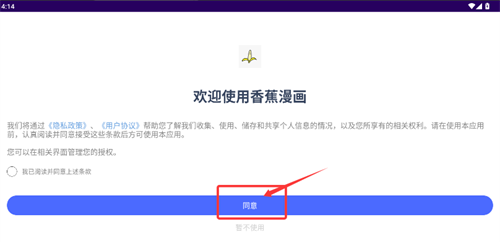 1、打开应用后,在用户条款页面勾选同意选项,点击进入主界面。