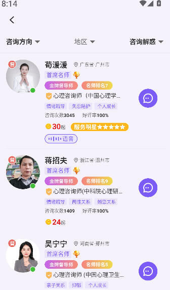 1、专业性强:app对加入的心理咨询师进行严格考核,确保服务的专业性和有效性。