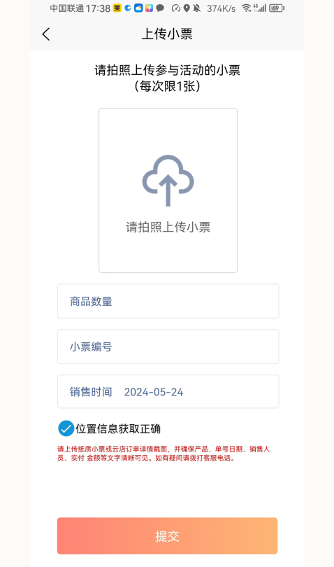 4、找到上传收据功能,上传收据并记录产品的销售数据信息。