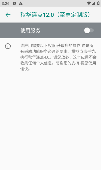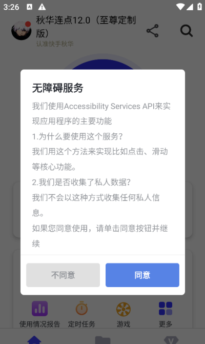 2、依赖无障碍服务达成核心功能,保障自动点击与滑动操作流畅不卡顿。