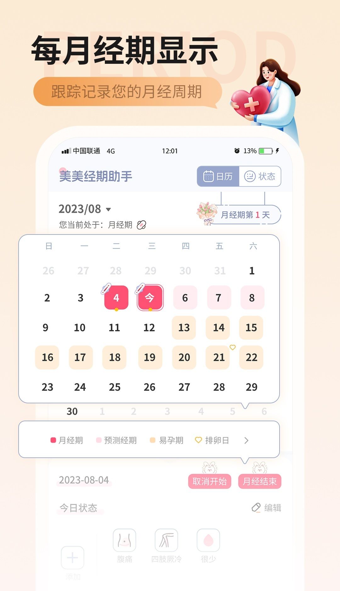 3、预测功能:基于用户输入的数据,智能预测未来的月经周期和排卵期,帮助用户提前做好准备。