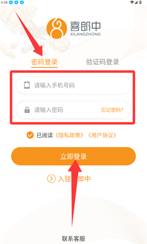 3、返回登录页面,选择密码登录,输入账户密码,点击登录进入。