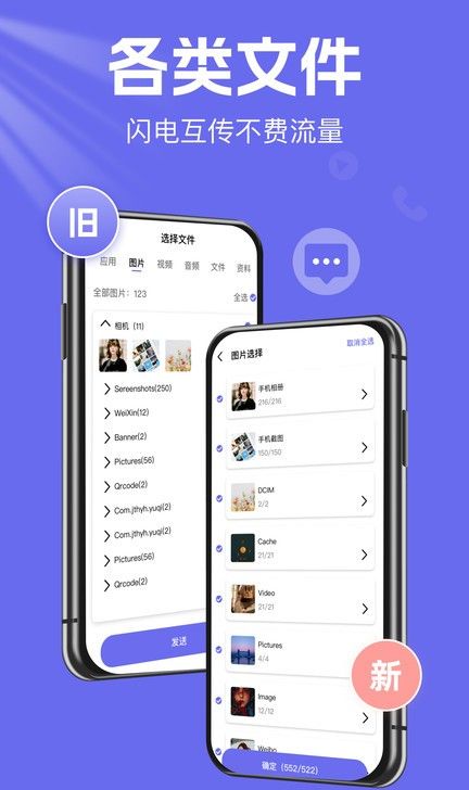 手机克隆换机王是一款非常实用的换机互传软件,拥有个性化的界面设计,可以帮助用户安全快速地将所有联系人、聊天记录、照片、视频、软件和重要数据从旧移动设备传输到新手机,轻松享受流畅的手机使用过程,还提供丰富的功能选项,无需任何权限即可上手使用,随时随地在线备份手机数据来保护隐私安全,能完全满足所有使用需求,还具有极速传输服务,允许用户轻松传输各种手机数据文件,有兴趣的用户欢迎来本站下载软件。