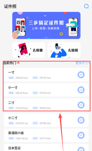2、尺寸多样:用户可以自由选择各种照片尺寸,如一英寸、两英寸等。