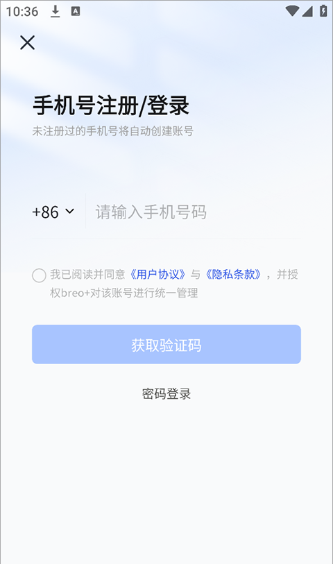 2、然后使用您的电话号码快速注册并登录。