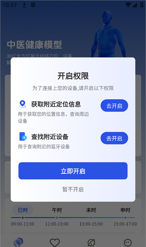 3、然后按照界面提示启用移动定位和蓝牙相关权限。