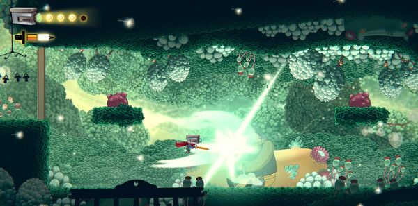 作为类银河战士恶魔城游戏,本作融合了横版动作、平台跳跃、解谜与碎片化叙事。玩家需在超大地图中探索隐藏区域,利用约翰的“投影仪头部”扫描环境、收集线索以解锁剧情。战斗系统以普攻、炸弹和蓄力吸血攻击为主,虽略显单一但强调节奏感与策略性。Boss战设计尤为独特,如“柔软森林”中象征父母争吵的怪物,需玩家结合场景机制破解其攻击模式。此外,游戏通过“念头即命运”的选择机制,让玩家的行动影响光明与黑暗的边界,赋予叙事动态变化。