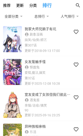 3、分类页面将漫画进行了详细的归类。