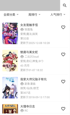 1、利用类别过滤:根据主题主题、地区或状态 (如序列化/完成) 进行准确搜索,以提高找到喜爱作品的效率。
