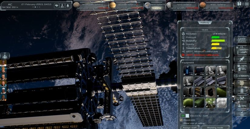 人物各有特长。每个殖民者都有自己的工作场所和需要满足的需求。空间站的氧气循环由再生器和工厂提供。