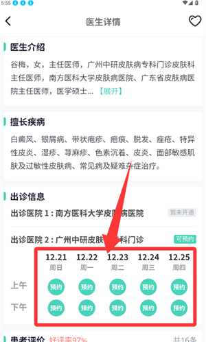 2、在首选医生区域中选择一位医生,然后进入他们的详细信息页面。