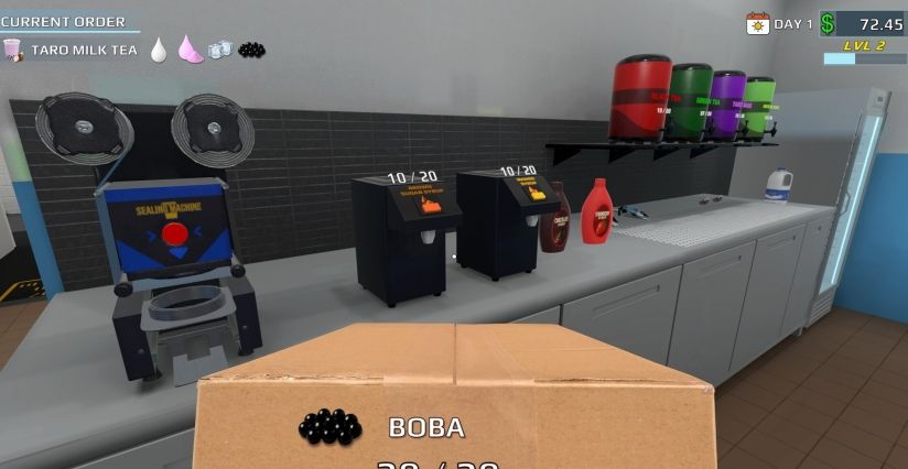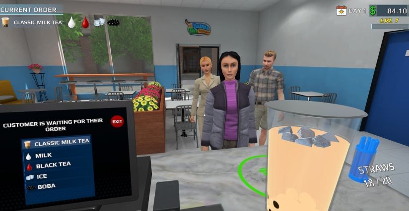 3、店铺经营管理:除制作饮品外,玩家还需进行进货、找零、服务顾客等操作,并可升级设备、扩大店铺面积以提升经营效率。