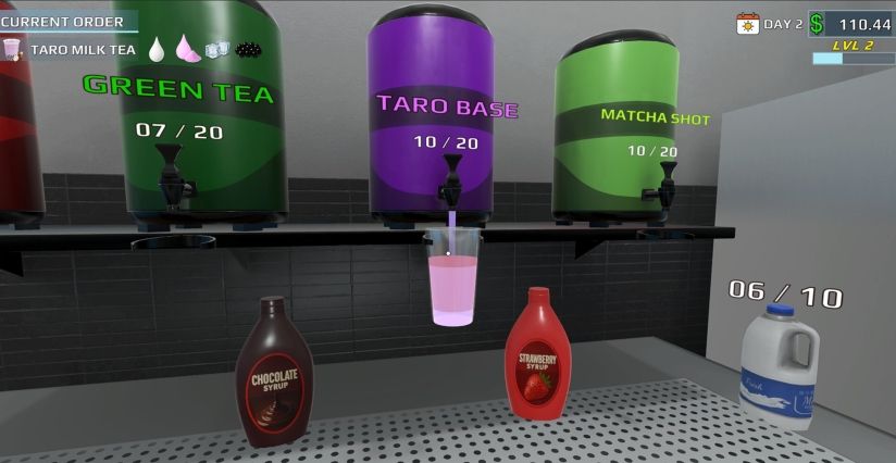 玩家需根据顾客订单,从丰富的原材料中进行选择和搭配。游戏提供了包括经典红茶、清新绿茶及草莓、芒果等多种果味茶在内的茶底选项。玩家需将茶底与牛奶、糖浆进行混合,并可加入富有嚼劲的珍珠或会爆浆的果冻等配料,制作出符合顾客个性化需求的饮品。随着游戏进程推进,玩家将不断解锁新的创意配方,提升制作技巧,并逐步升级店铺、扩大经营规模。