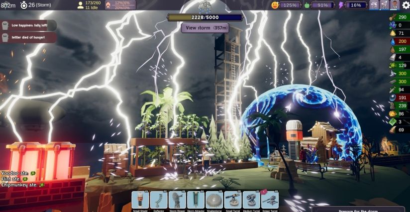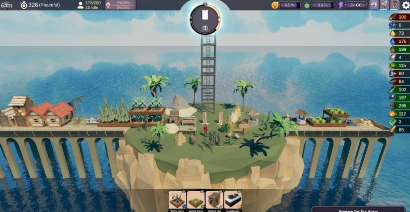 游戏设定在一个不断受到自然灾害威胁的世界,玩家需要建造并管理一座桥梁上的定居点,以抵御并超越周期性来袭的致命风暴。核心目标是尽可能延长桥梁定居点的长度,使其成为一个自给自足的社区,并在反复挑战中揭开风暴的起源。