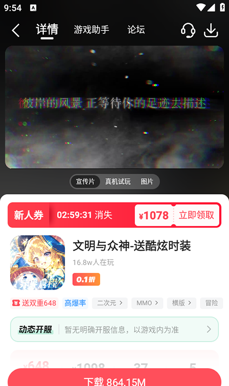 2、进入软件后找到感兴趣的游戏,点击领取648福利,下载。