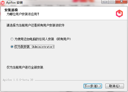 3.双击打开,进入Apifox软件界面,选择安装选项,点击下一步