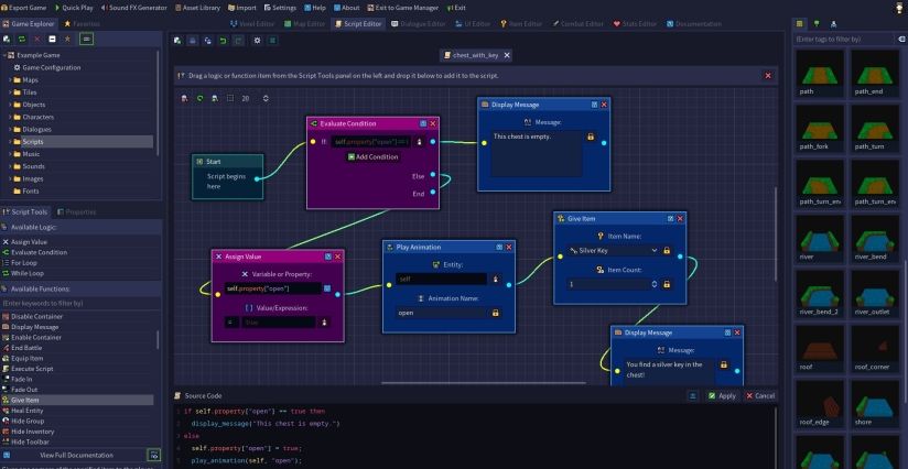 通过类似流程图的可视化脚本编辑器,您可以为游戏里的各个角色设计对话。在对话设计时,您同样可以根据不同的对话选项来确定下一步对话的不同分支。