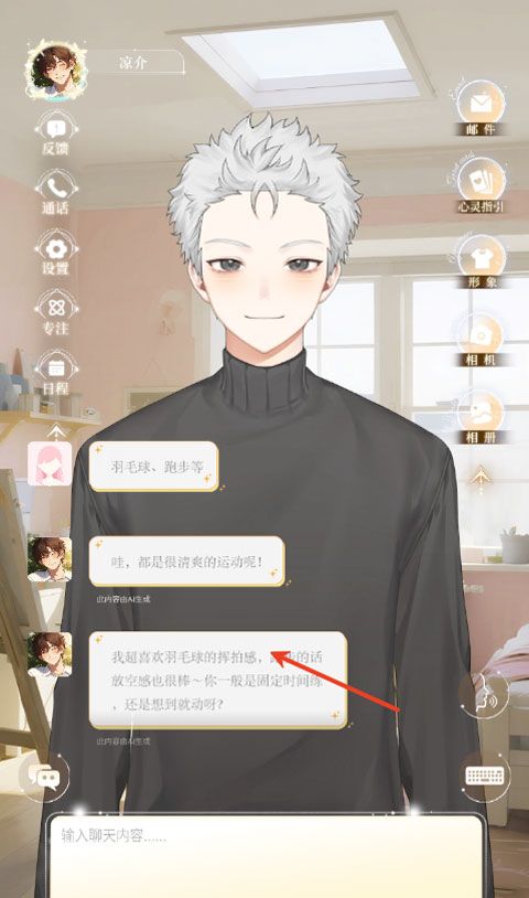 3、你可以和ai男友自由的聊天。
