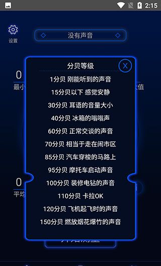 噪音分贝测试仪是一款非常的分贝检测软件,拥有全新的界面设计,可以让用户通过麦克风获得当前的分贝值,随时随地进行检测,自由享受全面的服务,还能直接看到实时噪声情况,包括最大值、最小值、平均值等详细数据,轻松做出简单的判断,能完全满足所有使用需求,还结合分贝参考和图表显示,轻松了解各种分贝噪音状况,也支持查询历史分贝噪音数据,轻松比较不同时间的噪音变化,有兴趣的用户欢迎来下载软件。