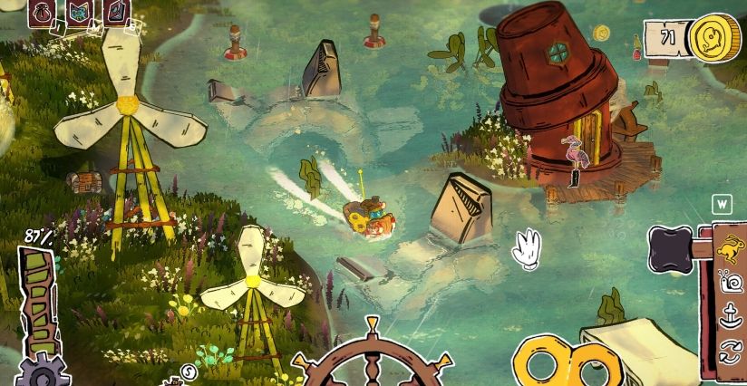 给钥匙上弦并掌舵 — 屏幕上的界面让你可以真实感受到船的移动。