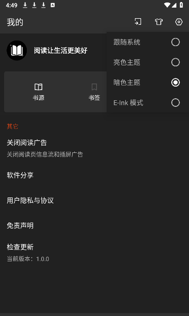 奇酷阅读app官方版常见问题解答-怎么更改暗色的颜色主题