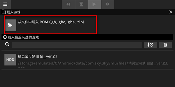 1、打开SkyEmu模拟器后点上方的载入游戏,可以选择gb,gbc,gba及ds游戏。