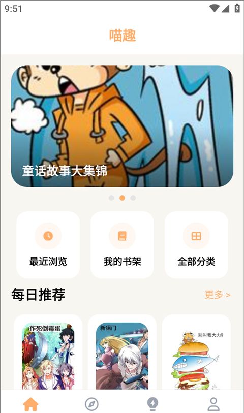 1、打开最新版本的喵趣动漫,进入后,您可以在主页上看到许多漫画和每日推荐。