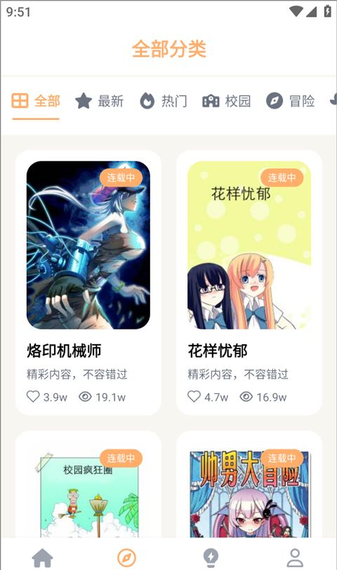 2、点击下面的分类,用户可以根据分类找到他们想阅读的漫画。