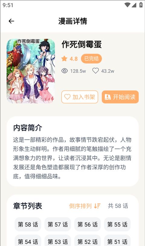 3、找到后,点击进入漫画详情页面,支持章节列表选择。