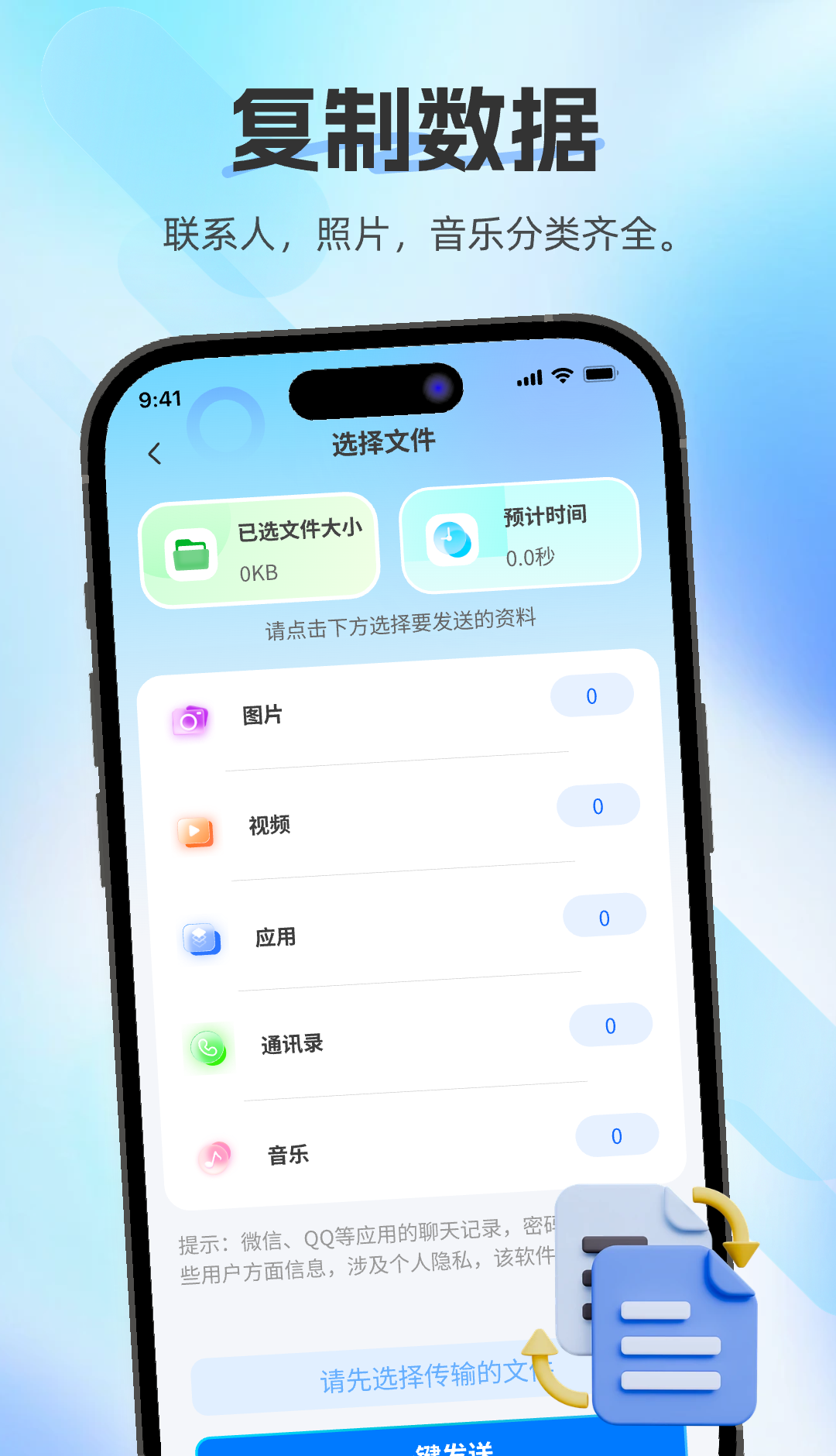 1、支持联系人、照片、视频、音频、文件等全类型数据迁移,从日常通讯信息到个人影音资料、办公文档,都能完整无损地同步到新设备。