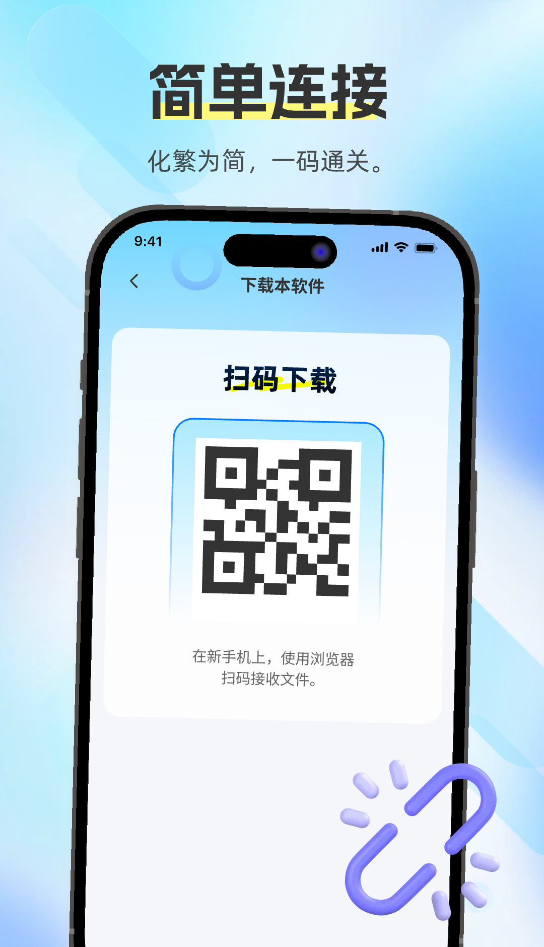 3、接收端设备点击扫码连接,扫描发送端生成的二维码,完成设备配对后即可自动开始数据传输。