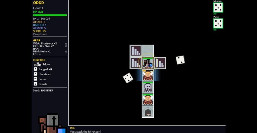 《一骰地牢探险》(One Dice Dungeon Delve,简称ODDD)诞生于一个由废纸和一枚六面骰子构成的实体原型,它捕捉到了桌游中那种纯粹的紧张感。没有复杂的数学计算——只有你、你的策略,以及骰子的滚动。