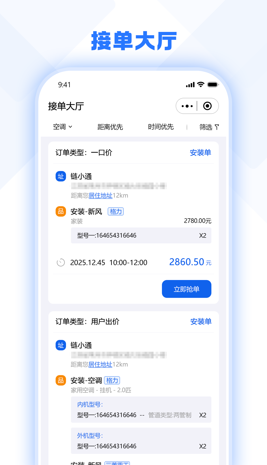 1、订单透明抢单自由灵活。订单大厅信息完整清晰,客户资料服务内容与上门时间一目了然。师傅可自主选择订单,不受强制派单限制,降低无效沟通成本。