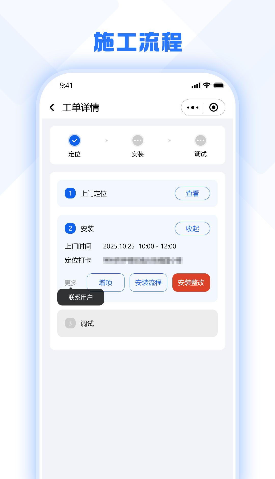 1、贴合家装师傅真实工作场景。应用专为家居装修行业打造,充分满足安装与维修等核心服务需求。它提供全面在线管理功能,操作实用便捷,无冗余复杂设计。