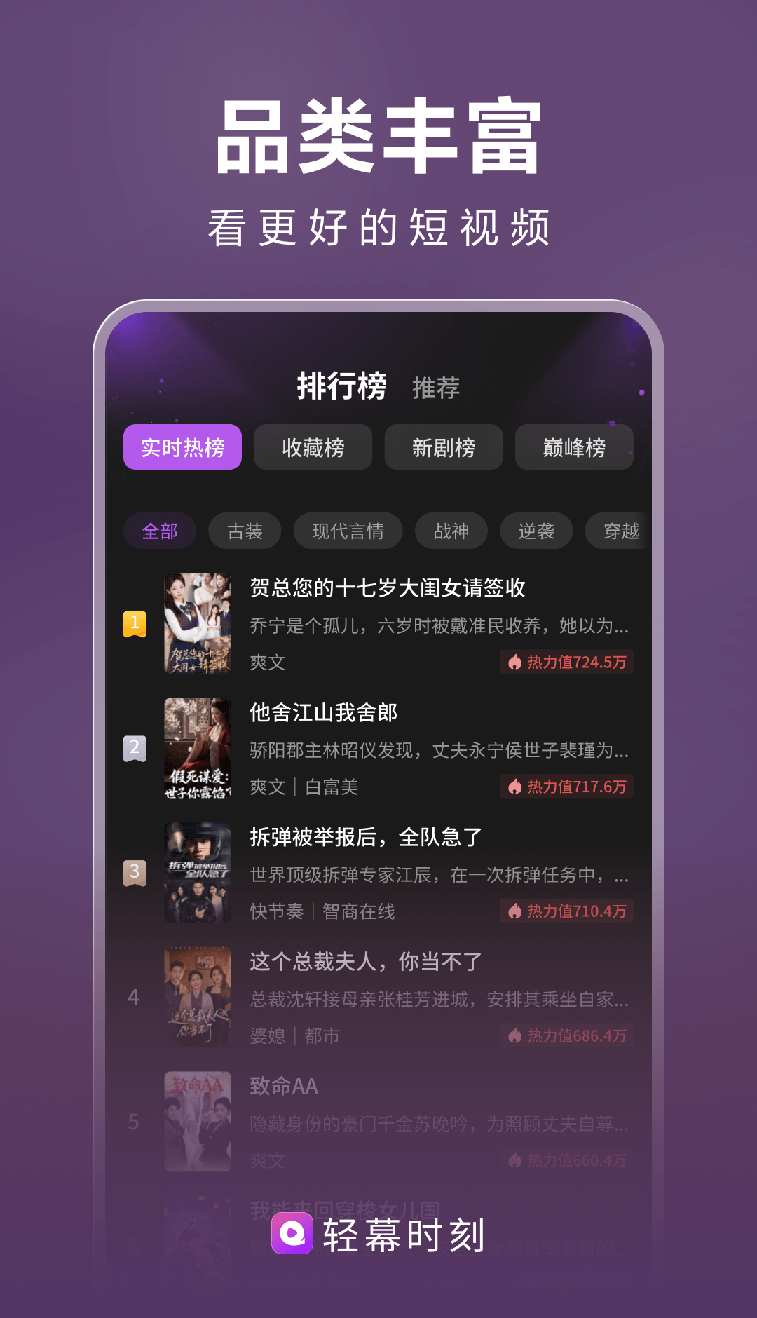 轻幕时刻是一款专为短剧爱好者打造的短视频追剧应用,主打 “轻幕一拉,惊喜开刷” 的轻松追剧体验,汇聚了全网爆款、多题材的优质短剧资源,涵盖总裁甜宠、逆袭重生、复仇萌宝、豪门虐恋、古装民国等海量题材,从爽感拉满的逆袭剧到甜度爆表的都市剧应有尽有。3 秒即可入戏,剧情节奏紧凑高能,支持随时随地开启追剧模式,让通勤、午休等碎片时间都能被轻松填满,随时随地解锁追剧乐趣,是打发闲暇时光的绝佳选择。