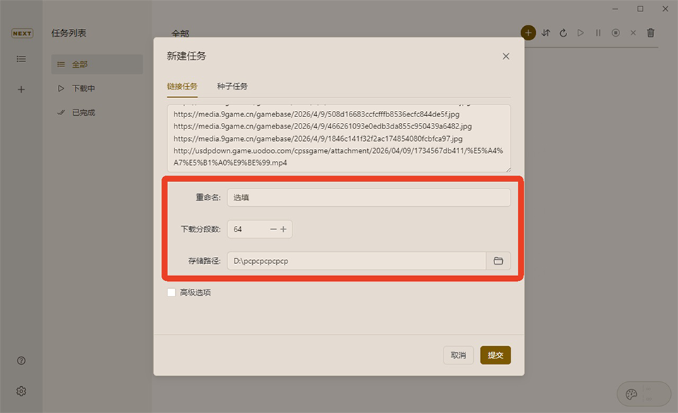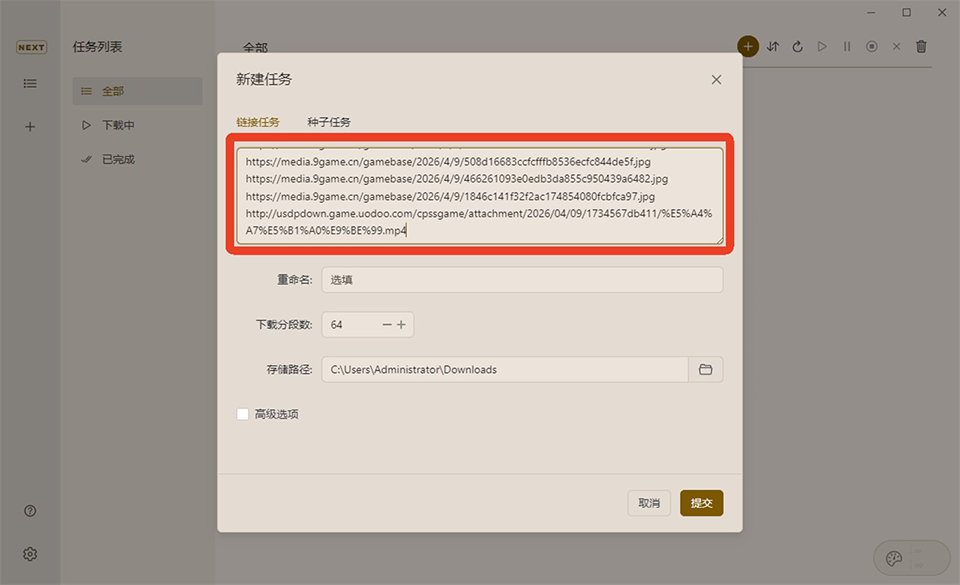 1)将下载链接复制到输入框中(每行一个链接,支持批量下载)。