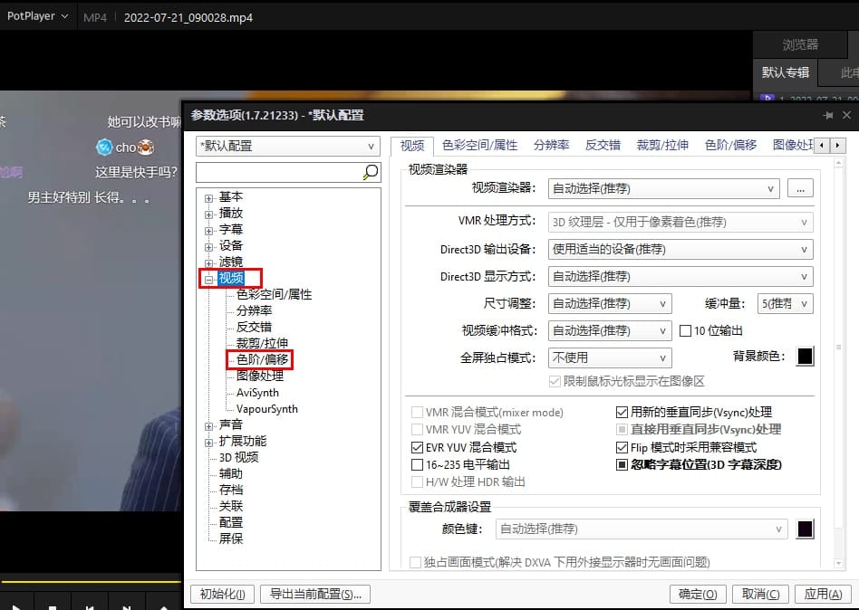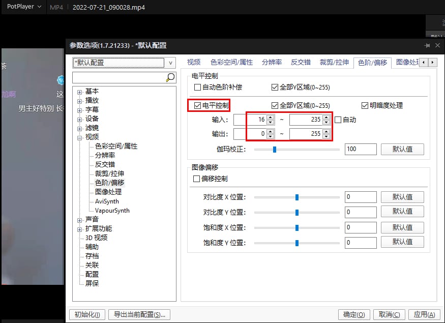 2、进入到设置页面之后,在页面的左侧将【视频】这个选项点击打开,然后在下拉选项中选择【色阶/偏移】。
