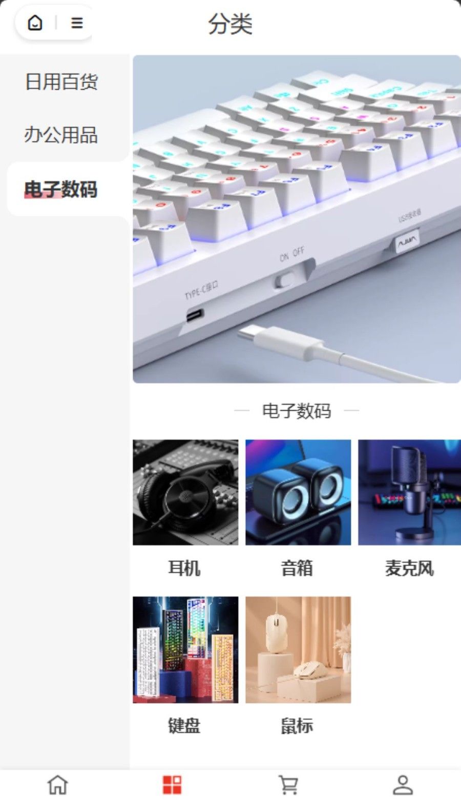 5、商品分类清晰规整,快速检索所需好物,精准下单,购物省时又省力。